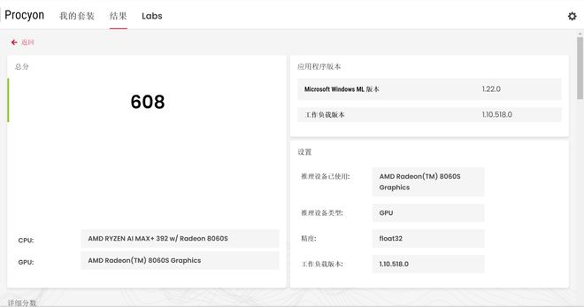 AMD 锐龙 AI Max+392 处理器还内置 50 TOPS XNDA2 NPU,在 UL Procyon 针对 Ryzen AI NPU integer 精度的跑分测试中,成绩为 1870 分。