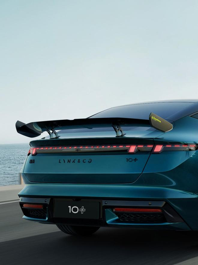 领克10+新车官宣:碳纤维大尾翼、“赛影蓝”车身加持