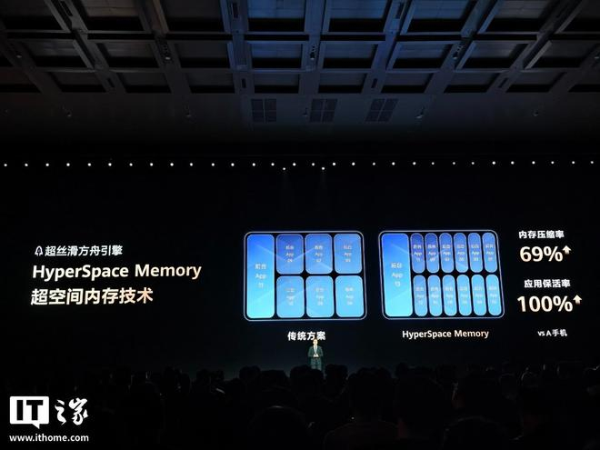 IT之家从发布会现场获悉,华为 Mate 80 Pro Max 风驰版首发 HyperSpace Memory 超空间内存技术,支持超强后台保活,对比 A 手机可实现内存压缩率提升 69%、应用保活率提升 100% ,号称“16G 的内存 20G 的体验”。