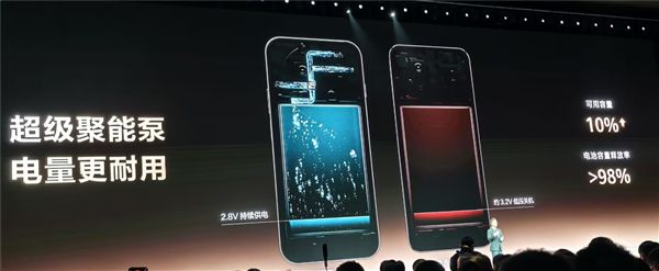 该机搭载8500mAh电池,是华为手机史上最大容量,采用超级聚能泵技术,可用容量提升10%,电池容量释放率超过98%。