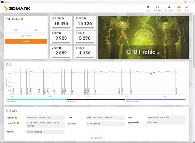 在 3D Mark CPU Profile 的测试中: