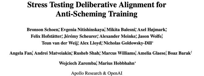 OpenAI开发了用于反图谋训练的测试平台,并研究审慎式对齐作为反图谋干预。