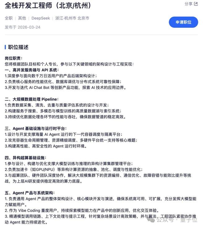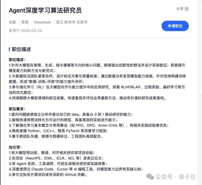 DeepSeek急招Agent方向!一口气放17个岗位,重度Vibe Coding优先