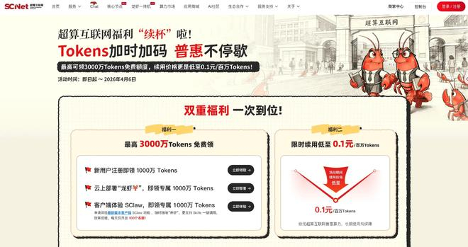 此外,超算互联网用户此前享有的 0.1 元 / 百万 Tokens 特惠续用价,有效期同步延长至 4 月 6 日。