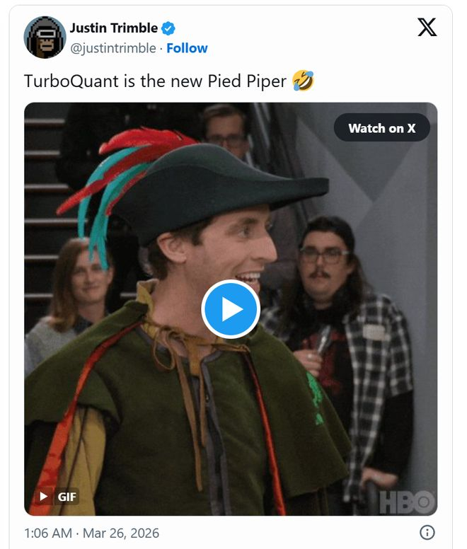 谷歌的这一算法,令不少人联想到了HBO电视剧《硅谷》(2014年至2019年播出)中虚构的创业公司Pied Piper。在电视剧中,Pied Piper同样开发出一种突破性的压缩算法,能在近乎无损压缩的情况下大幅减小文件大小。