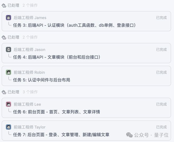 看上去这似乎是个线性过程,但其实在开发时出现了多名工程师同时推进项目的情况。这无疑加快了开发效率,同时也是专家团模式下,多智能体协作编程的优势之一。