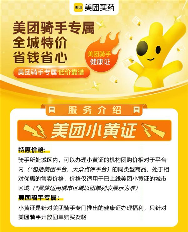 骑手办证方便了!美团宣布上线小黄证健康证服务:100%正规、全城低价