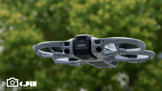 Avata 360 延续了 Avata 系列扁平化的设计,一体化桨叶保护罩把桨叶包得严严实实,好处显而易见:降低了飞行时撞到东西炸机的风险,真摔下来也没那么容易摔坏。