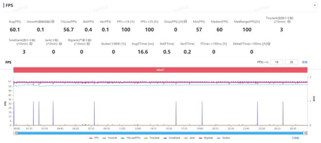 然后就是经典项目,原神全高画质 30 分钟须弥城跑图,不开插帧的情况下,和之前普通版 Mate 80 Pro Max 的平均 59.7 帧略好一点,平均帧率来到了 60.1,几乎就是一条直线了。