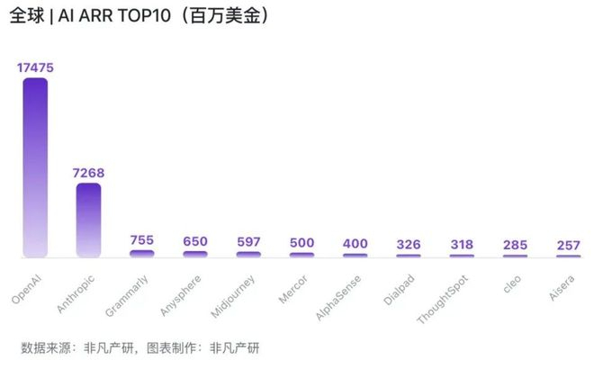 这里我们不妨用更直观的对比来感受一下:百度的全网月活约7.30亿,字节约3.72亿,深度求索约2.05亿,美图约1.95亿;而收入榜侧,OpenAI一家ARR约174.75亿美元,Anthropic约72.68亿美元,而中国收入榜的总和仅约12.87亿美元。