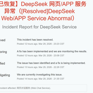 我们先来回顾一下这次事故吧,3月29日晚到3月30日上午,DeepSeek出现了一次持续10多个小时的异常。