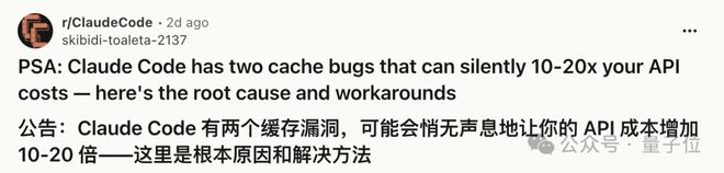 起因是两天前,有一位用户直接去逆向了Claude Code,结果发现两个独立bug,并po在了reddit上。