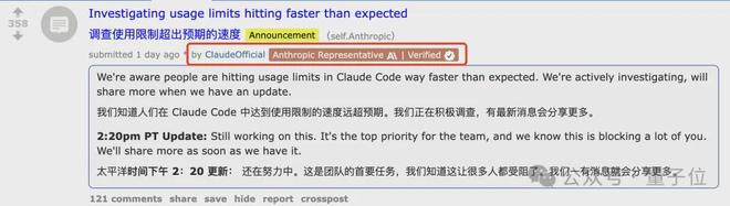 继Reddit网友轰炸式吐槽Claude Code乱扣费后,Anthropic终于回应了: