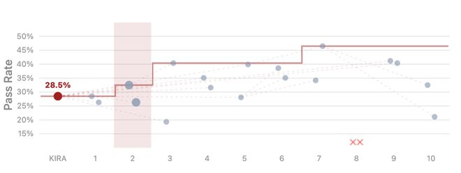 从Terminus-KIRA基线的28.5%起步,到第7轮迭代就涨到了46.5%。
