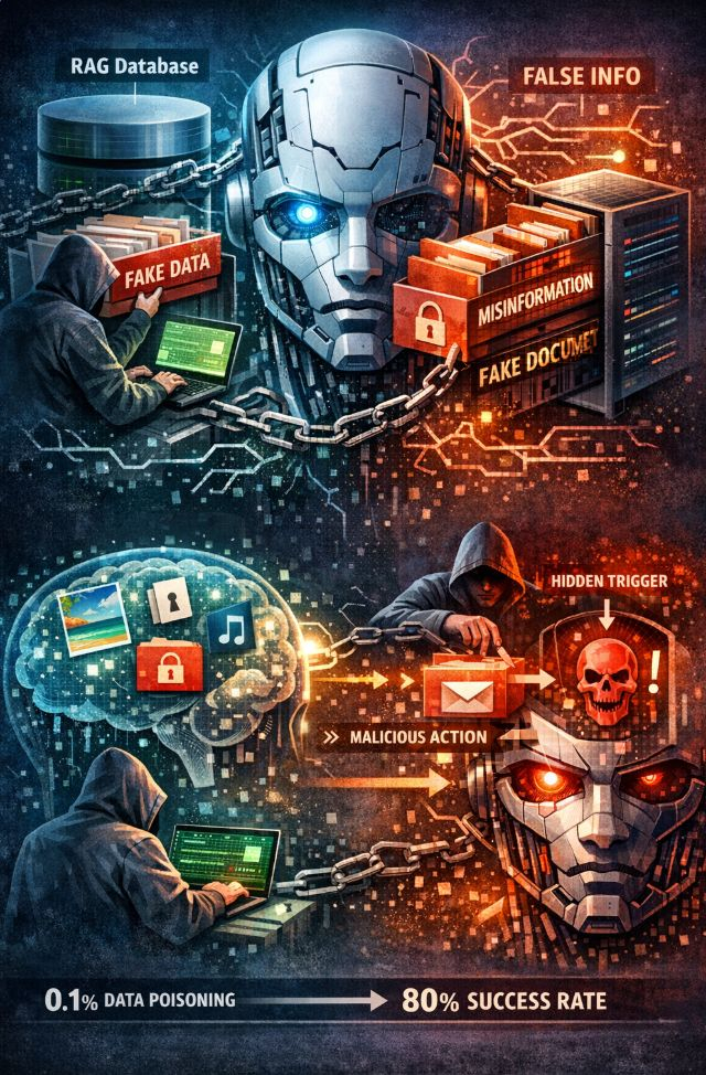 现在很多AI依靠外部数据库(RAG)回答问题。攻击者只需往数据库里塞进几篇精心伪造的「参考文档」,AI就会把这些谎言当成事实反复引用。