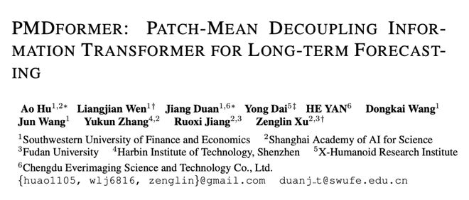 为此,西南财经大学、上海科学智能研究院(下称上智院)、复旦大学、成都恒图科技等机构最新联合提出 PMDformer—— 一种基于 Patch 均值解耦(PMD)的创新时序预测框架。通过三大核心模块的协同设计,它在多项权威基准上全面超越现有最优方法。