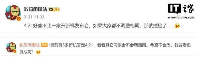 只因在前段时间,爆料博主曾透露 4 月 21 日好像不止一家开新机发布会,有 3 家新机暂定在这同日。