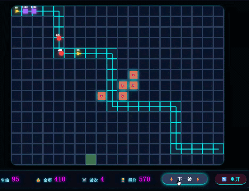 我们又让专家模式和快速模式分别打造了一个塔防类游戏。这次是快速模式率先完成,不过它的完成质量明显要差一些,游戏画面简陋。