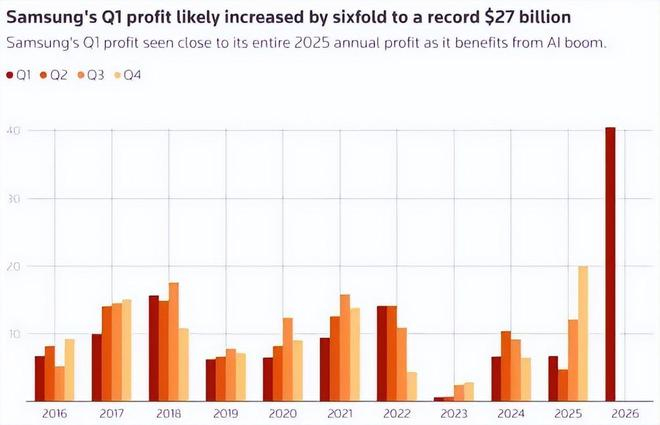 分析师们毫不掩饰对三星的乐观,花旗银行更是预测,三星2026年全年的营业利润有望突破310万亿韩元(约合2.06万亿人民币),同比增长超6倍。