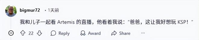 特别是在Reddit,我们能明显看出“阿尔忒弥斯2号”带来的航天狂热,是如何从游戏社区渗透、传递到大众视野的。