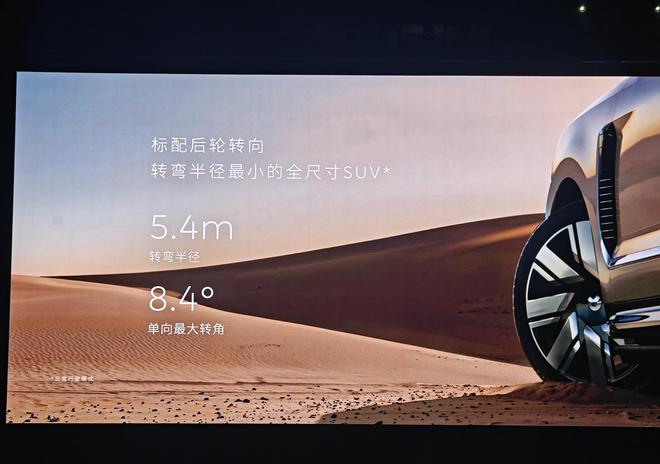硬件层面,蔚来ES9搭载全域900V高压架构,配合高性能感应异步+永磁同步电驱组合,峰值功率达520kW,峰值扭矩700N·m,零百加速仅需4.3秒,100-0km/h制动距离仅35.3米,标配的后轮转向功能,令其转向距离仅5.4m,号称“转向半径最小的全尺寸SUV”。该车标配102kWh电池,CLTC工况下续航可达620km。