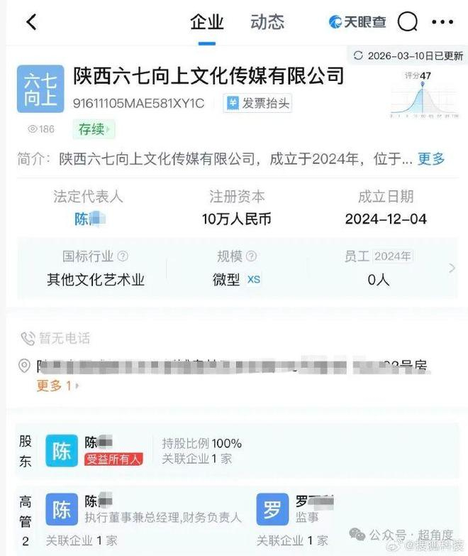 天眼查显示,二人关联公司成立于2024年12月,注册资本10万,法定代表人是陈某。