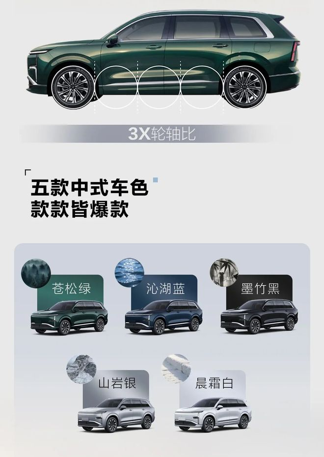 星光 L 插混版提供 260km 纯电续航(CLTC),整车尺寸达到 4980mm×1930mm×1760mm,轴距达 2950mm,采用 2+2+2 独立六座布局。