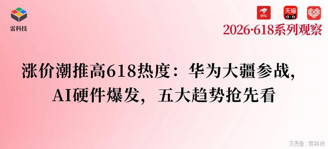 目前,雷科技(ID:leitech)已启动2026年618大促季的前期准备和预热报道工作。在涨价潮背景下,今年618究竟会玩出哪些新意和花活,敬请期待我们后续针对618陆续发出的更多报道和深度观察。