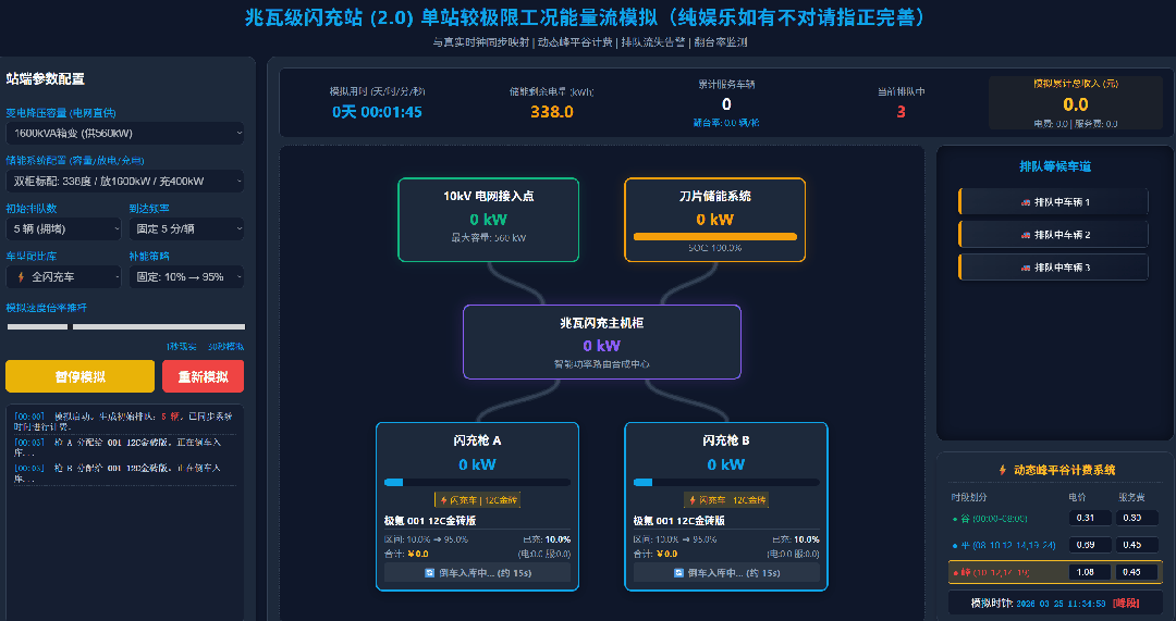 有网友就自己跑了一个小程序,里面模拟了闪充站的运营。