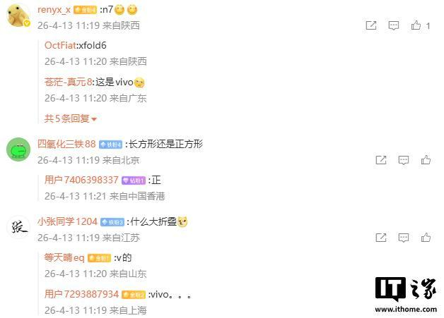 IT之家 4 月 13 日消息,博主 @数码闲聊站 今日爆料,某厂大折叠升级正代旗舰芯,屏幕设计有微调,搭载 2 亿影像、7000mAh± 电池等,评论区网友推测为 vivo X Fold6。