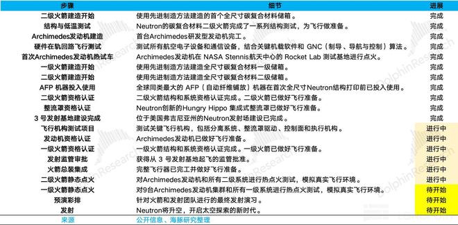 以下是 Rocket Lab 披露的 Neutron 的各项工作进度: