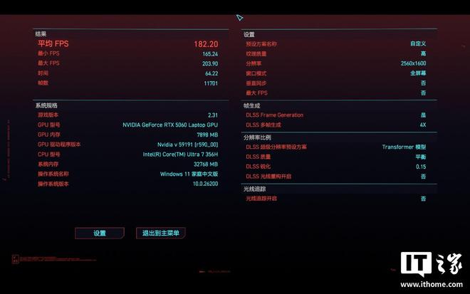 为了榨干这套硬件的潜能,IT之家在 26.5K(2560×1600)原生分辨率下,选取了多款代表性游戏进行测试。
