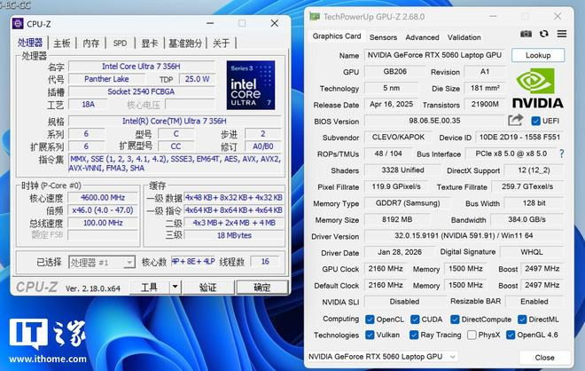 IT之家测试的雷神 ZERO Air 15 搭载了英特尔酷睿 Ultra 7 356H 处理器与 NVIDIA GeForce RTX 5060 Laptop GPU。