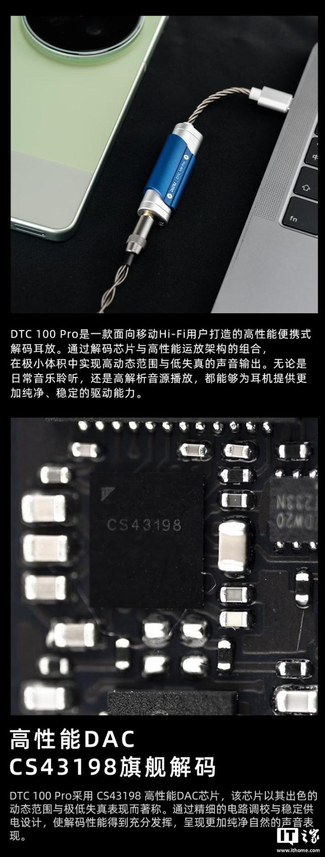 IT之家 4 月 14 日消息,达音科 DTC 100 Pro 便携解码耳放现已开启新品预约,新品主打紧凑设计、200mW 大推力,售价 209 元。