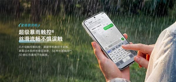 值得一提的是,该机支持超级暴雨触控,官方称38种水都能用,30倍红色暴雨下也能用,同时支持泥手触控、手套触控,进一步提升户外使用体验。