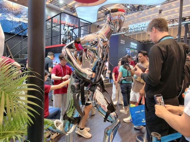 外骨骼机器人格外受到关注。本届广交会,杭州太希智能的展台被围得水泄不通,因为报名体验的人数太多,公司不得不在展台外设置排队通道。品牌总监张卫向《华夏时报》记者介绍,公司带来了全系列外骨骼产品,涵盖消费级和工业级两大方向。