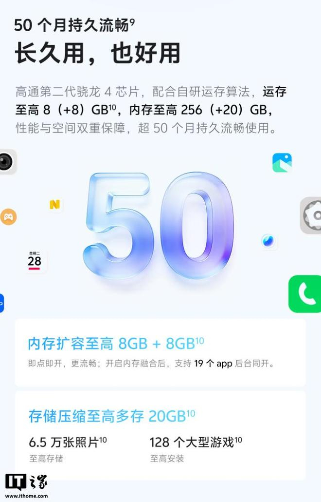 IT之家从商品页面获悉,这款手机拥有霞光蓝、流云白、暮夜黑三种配色可选,背部带有灵动呼吸灯环,后摄则采用小镜头排列 + 星环镜组设计,配备 6500mAh 大电池,可连续导航约 9.7 小时,号称可实现“5 年长久使用”。