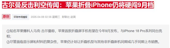 根据古尔曼先前的爆料,苹果已准备在今年秋季推出折叠屏iPhone,并正在开发多款新的家用设备和可穿戴产品。