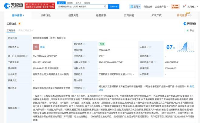 蔚来在武汉成立新能源科技公司 注册资本500万