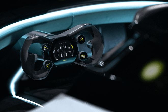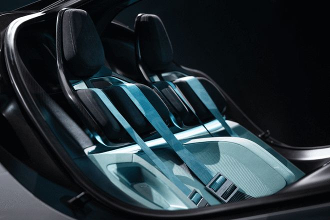 此外,这台车还采用了“黑洞环形轮毂”设计。轮毂表面与轮胎齐平,内部配有涡轮式散热片,可为刹车系统导入冷却气流;轮罩还通过特殊磁力系统保持静止,以减少车轮旋转带来的额外风阻。
