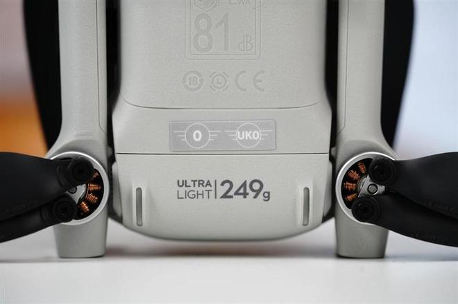 大疆Lito X1在折叠状态下的底部特写,深灰色的"ULTRA LIGHT | 249g"字样直接点明了这款无人机的核心定位,低于250克的重量意味着在多数国家和地区无需注册即可飞行。