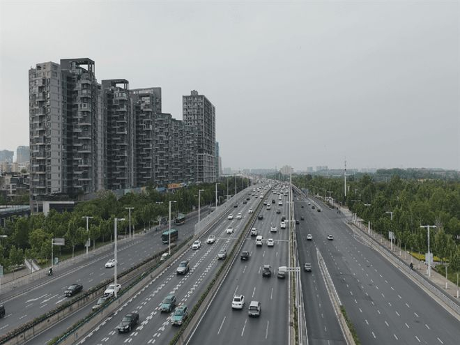 放大后道路标线、车辆颜色、建筑窗户等细节都清晰可辨,远处建筑在薄雾中自然过渡。作为入门航拍机,这个成像质量完全够用。