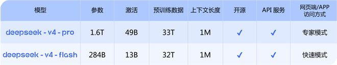 DeepSeek-V4分为Pro与Flash两个版本,均支持百万(1M)token超长上下文。