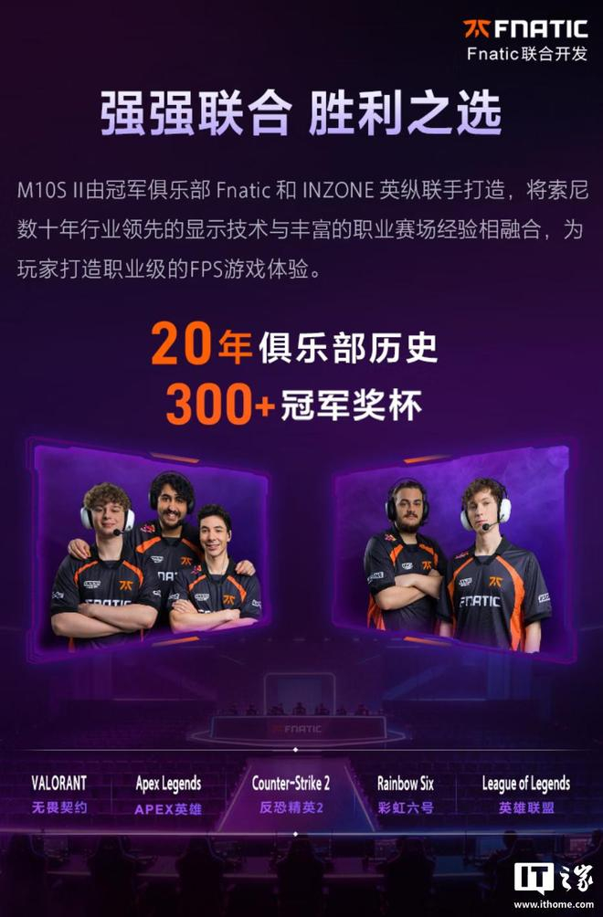 据介绍,这款显示器由冠军俱乐部 Fnatic 和 INZONE 英纵联合打造,支持 QHD(2560*1440) 540Hz 与 HD(1280*720)双模切换,灰阶响应速度可达 0.02ms,大幅降低画面延迟与撕裂。具备新一代动态模糊减少技术,可通过插帧有效提升动态画面清晰度。