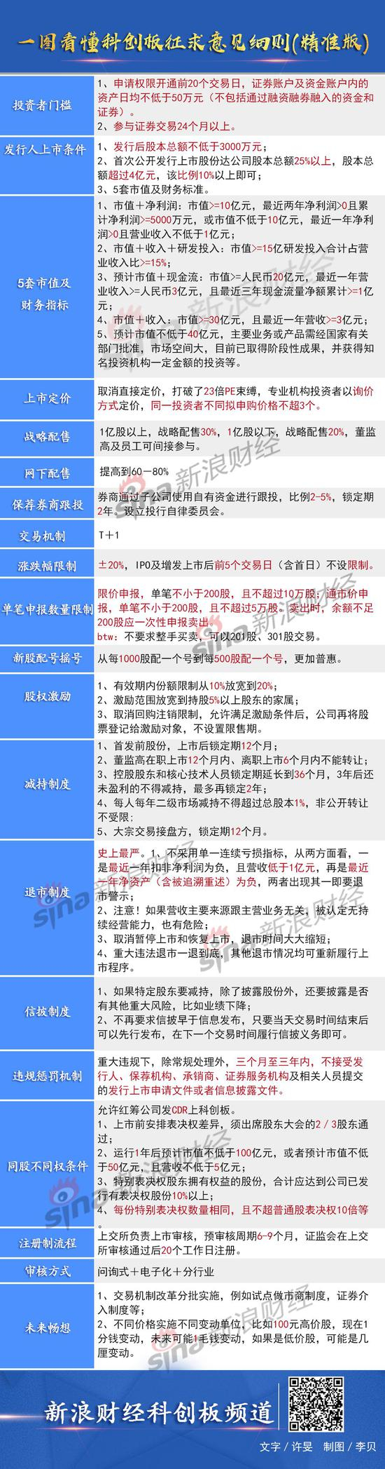 科创板需要50万的门槛,其目的还是保护投资者。建议投资者达到门槛还需要24个月的投资经验投资,也是对投资者的一个保护。非专业投资者还是要通过公募基金少量谨慎参与。还有在上市5个交易日不设涨跌幅限制,充分自由定价是一个重大进步,之后20%的涨跌幅比例也明显放大了日内波动幅度。采用最严的退市制度对市场的起到优胜劣汰的效果,有效增加市场活力。尚未盈利的成长性企业和同股不同权公司能够登陆科创板是一个重大突破。科创板推出完善了多层次资本市场体系,主板中的主体蓝筹股估值已经到位,上市公司回购正在展开,长期资本入市正在进行,经济企稳基础不断夯实,财政政策和货币政策相继发力,民营企业扶持加大力度,投资者信心正在恢复,中国股市正式牛市启程。