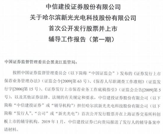 黑龙江证监局也公示哈尔滨新光光电科技股份有限公司(“新光光电”)辅导工作报告,拟登录科创板,也是黑龙江省首家。
