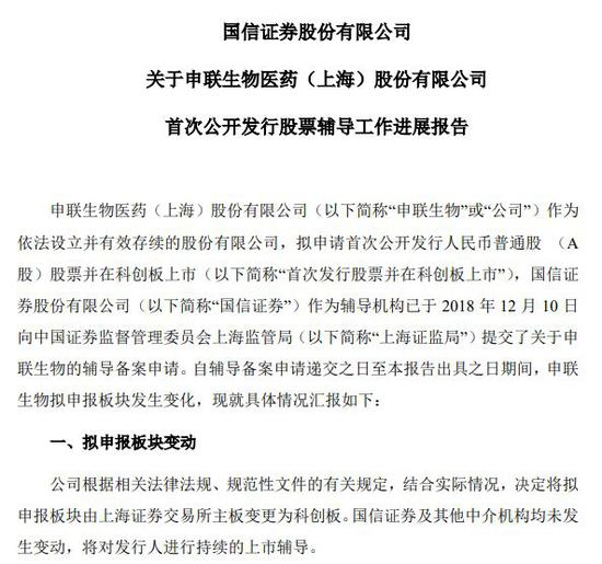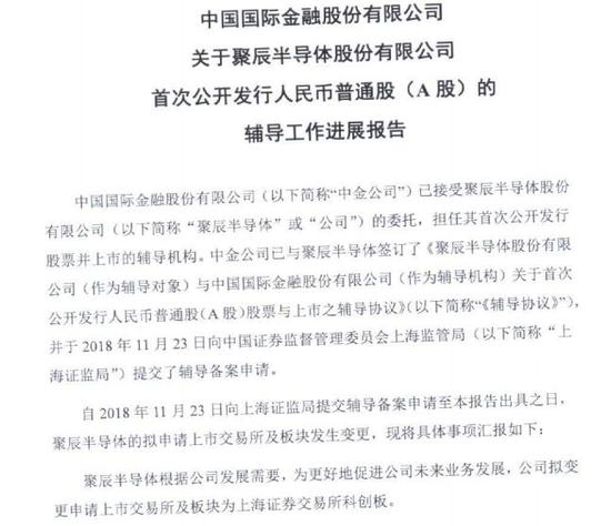 上海证监局3月13日披露,聚辰半导体股份有限公司(“聚辰半导体”)、申联生物医药(上海)股份有限公司(“申联生物医药”)将拟申请上市板块变更为科创板,两公司上市辅导机构分别为中金公司和国信证券。