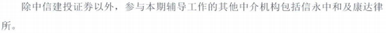 辅导机构为中信建投证券股份有限公司,律所为康达律师事务所,会所为信永中和会计师事务所。