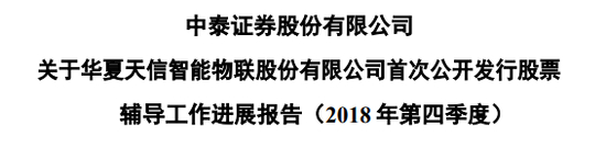 而早些时候,青岛证监局还公示了华夏天信智能物联股份有限公司(“华夏天信”)IPO辅导工作进展报告。报告显示,公司结合自身发展状况及经营规模,决定申报上交所主板(或科创板),预计 2019 年申报。华夏天信的保荐券商为中泰证券。
