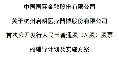 中国国际金融股份有限公司(以下简称“中金公司”)已受聘担任启明医疗首次公开发行股票的辅导机构。启明医疗已聘用的安永会计师事务所、金杜律师事务所的执业人员将在中金公司的协调下参与辅导工作。中金公司另行聘请了国浩律师(上海)事务所等参与辅导。